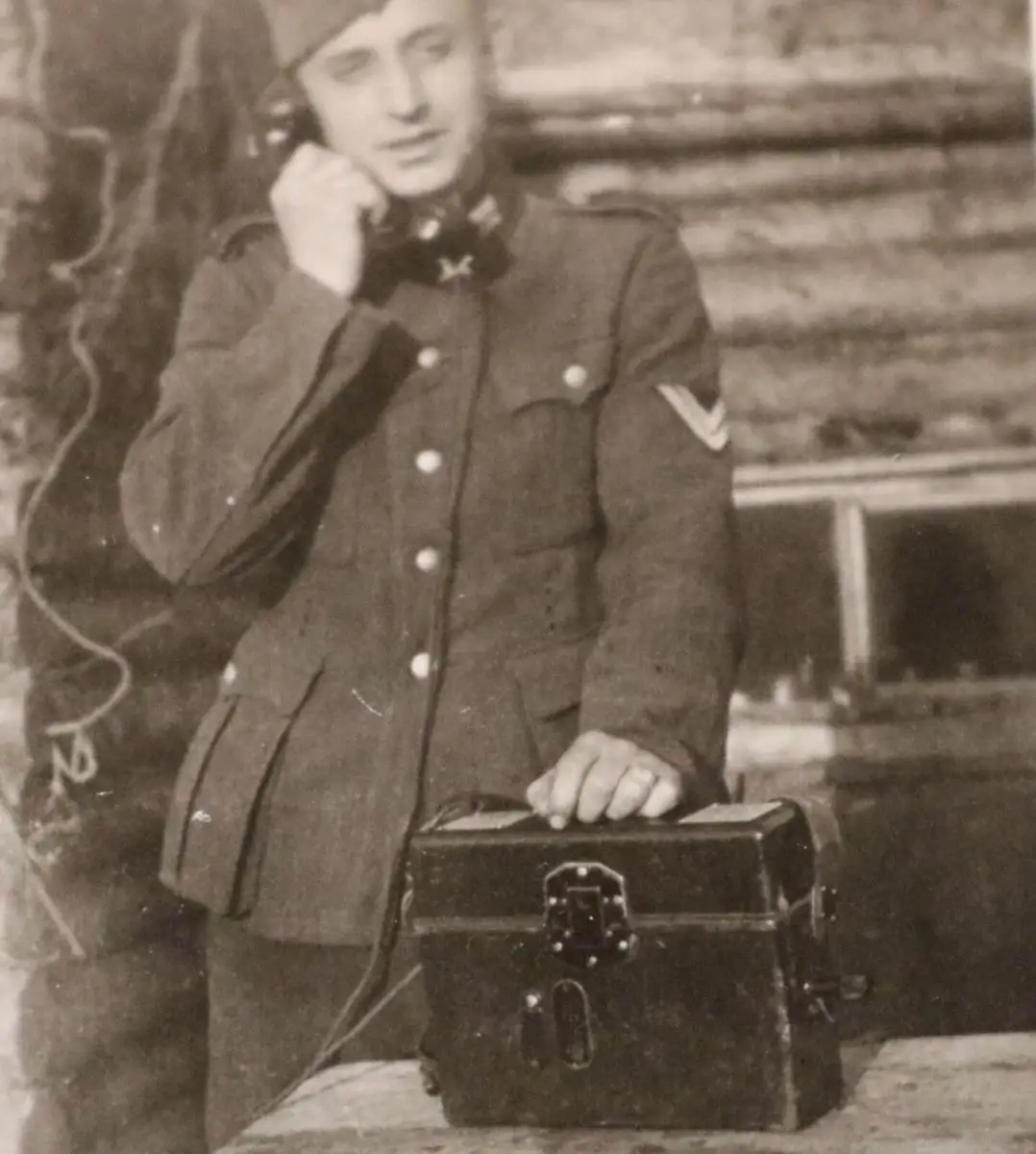 Biete hier ein tolles altes Foto Soldat mit Feldtelefon an
