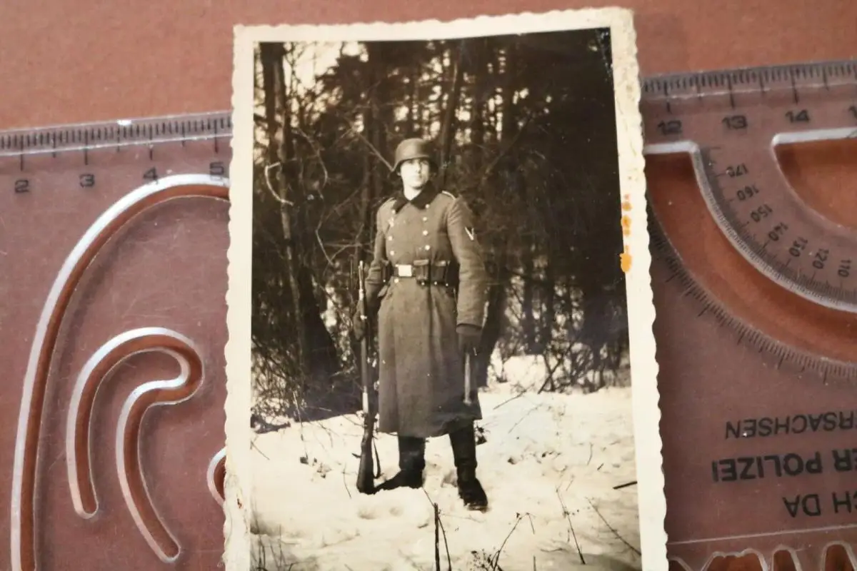 Biete hier ein tolles altes Portrait - Soldat mit Stahlhelm - auf Wache ? an