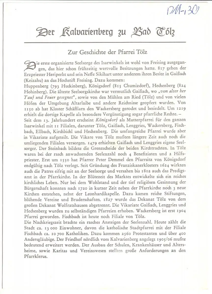 Prospekt, touristisches Faltblatt Der Kalvarienberg zu Bad Tölz Erscheinungsjahr: ohne Jahresangabe, um 1970 Format: 15 x 21 cm, gefaltet Versandgewicht: 20 g Der