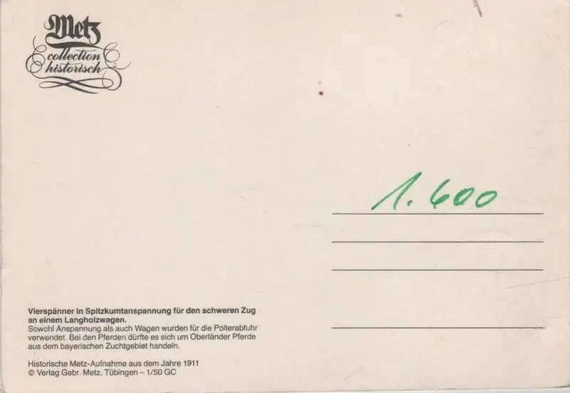 unbekannter Ort - Vierspänner mit Langholzwagen (Reprint)