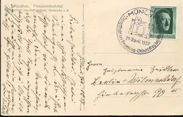 x16292; NS-Zeit: Geburtstag des Führers.München 20 April 1937. Mi646 bedarf. Auf Ansichtskarte.