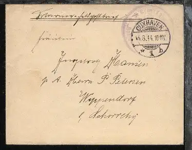zu MSP 57 OSt. Cuxhaven 14.8.14 + BfSt. Kommando SMS Schlesien auf FP-Bf.