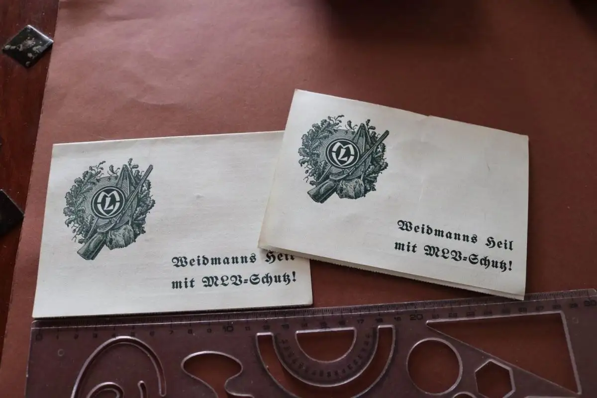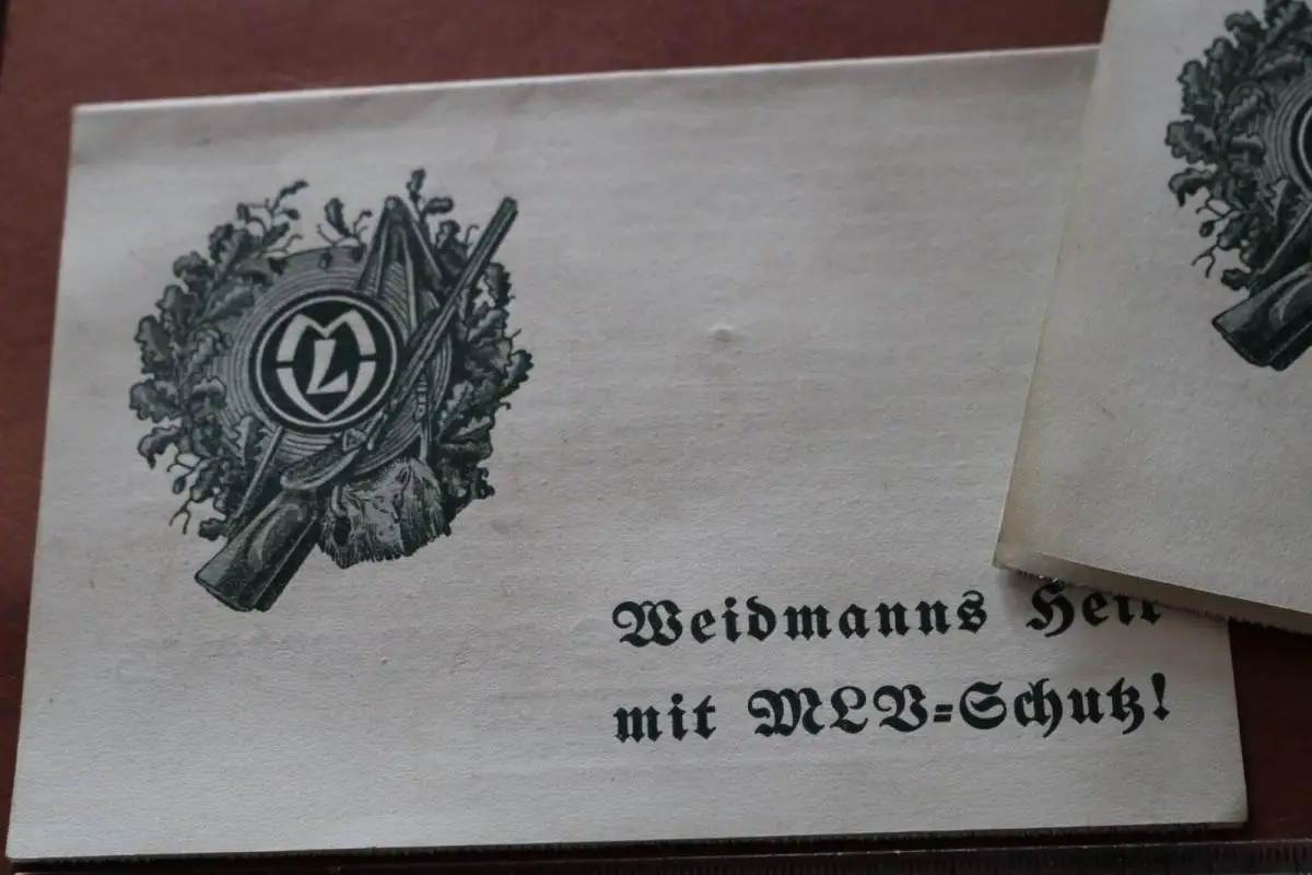 Biete hier zwei tolle alte Werbekarten Weidmanns Heil mit MLV-Schutz - Jäger 20-30er Jahre an